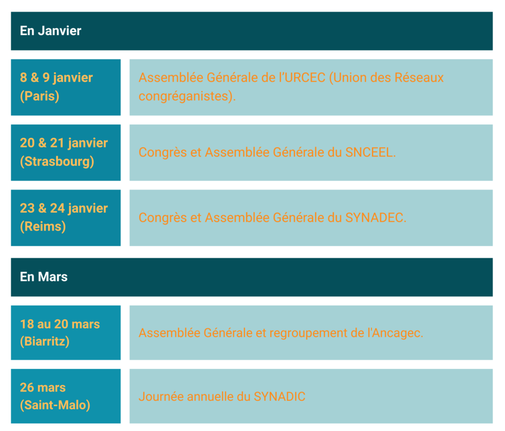 Pour nous, 2026 se place résolument sous le signe de la proximité avec les acteurs de l’Enseignement Catholique. Congrès, Assemblées Générales, ou lors de nos propres Matinales : où rencontrer nos experts pour échanger sur vos enjeux de gestion en ce début d’année ?