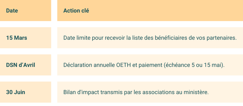 Dans le secteur de l’enseignement, l’anticipation est la clĂ©. Pour que vos conventions de stage ou vos contrats d’alternance respectent le critère des 6 mois au titre d’une annĂ©e civile, nous vous conseillons de finaliser vos recrutements ou partenariats dès la rentrĂ©e de septembre. Ne subissez pas votre contribution, transformez lĂ en projet social !
